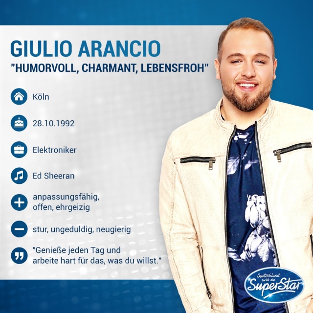 Giulio: Ich mag mich auch nicht musikalisch festlegen und werde abwarten, was jetzt so auf mich zukommt. Zunächst bin ich ganz und gar fixiert auf DSDS und will auch gewinnen. Was dann danach kommt, werde ich einfach abwarten. Natürlich bin ich auch gespannt. Ihr werdet in jedem Falle auch nach der Staffel noch von mir hören.